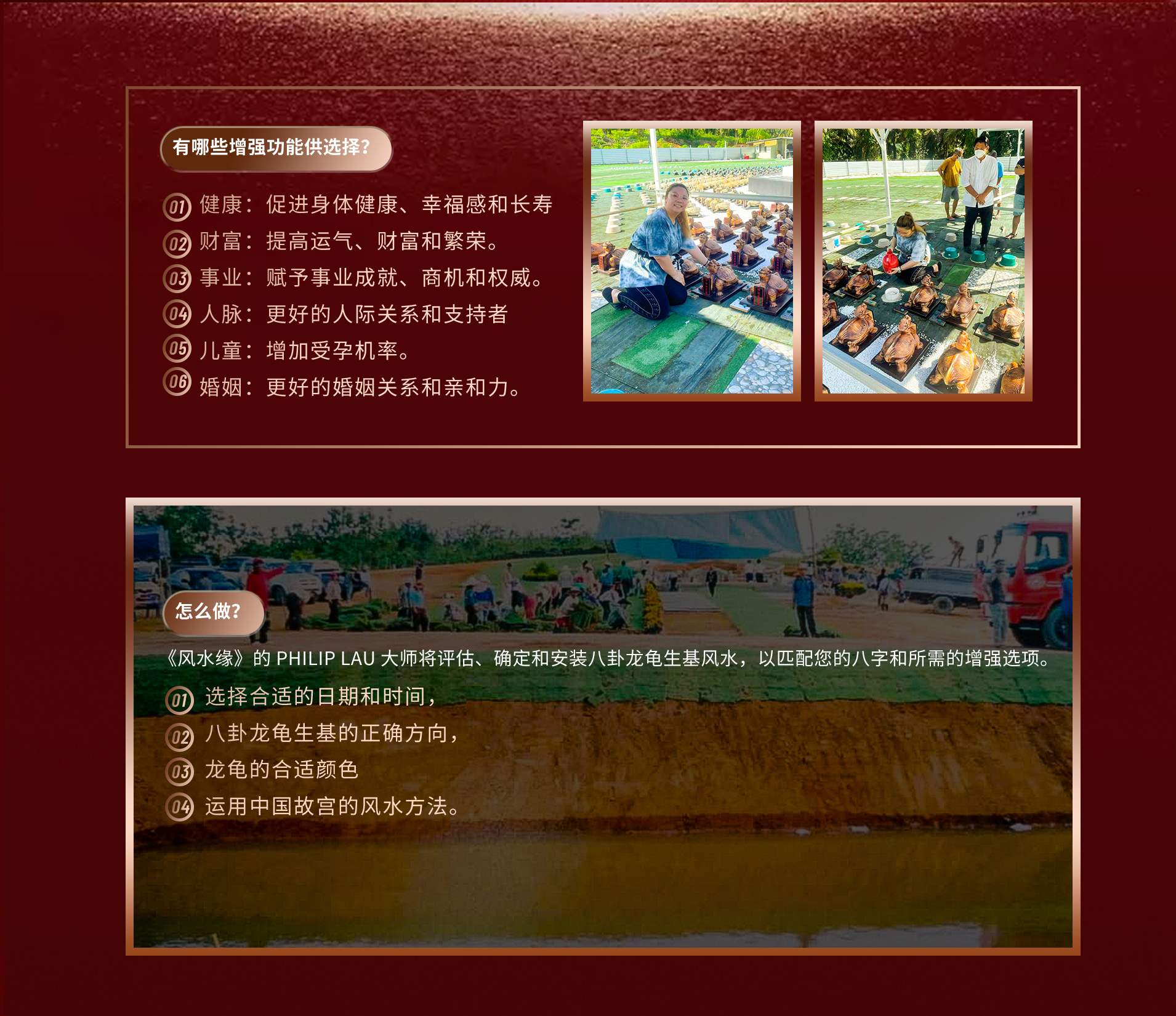 提供生基主人量身定制,选择以匹配个人的方向风水,龙龟颜色和八字匹配。